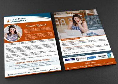 Explore our Speaker Press Kit and One Sheet portfolio, featuring captivating designs that are tailored to empower speakers. Each piece exemplifies our expertise in creating professional and attention-grabbing promotional materials. With a focus on showcasing expertise and making a memorable impact, our portfolio is a testament to our ability to elevate your speaking career and attract valuable opportunities. Browse through our portfolio to discover how our designs can leave a lasting impression on event organizers and captivate audiences.