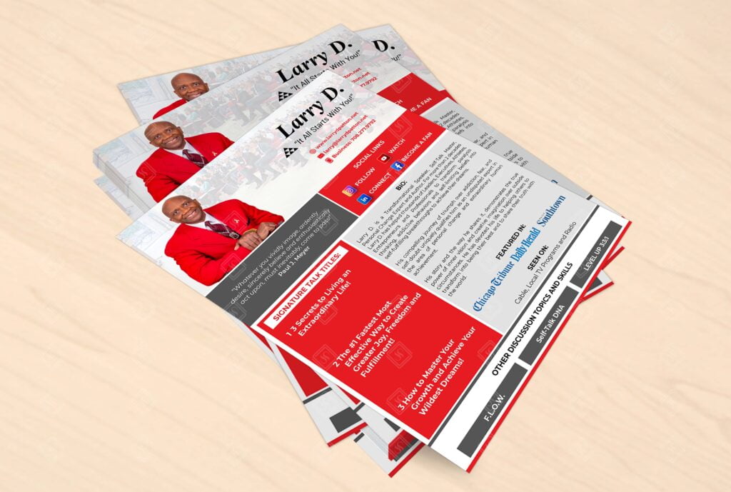 “I can’t thank this team enough for their incredible work. They took my ideas and transformed them into a professional one-sheet that stands out. I’ve received countless compliments and it has really helped elevate my speaking career.”